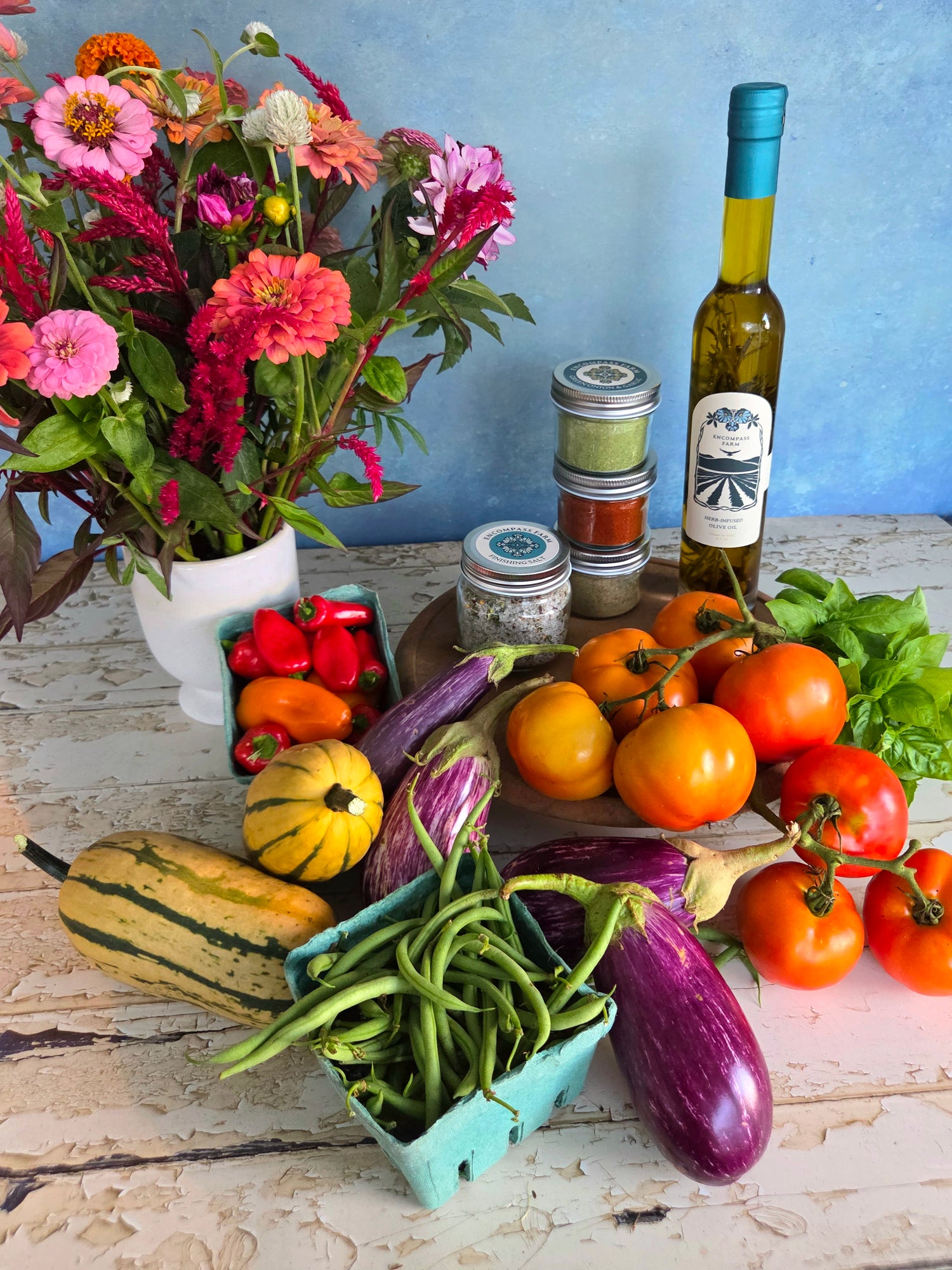 - Add on fresh flowers, organic eggs, farm grown seasonings + more goods
