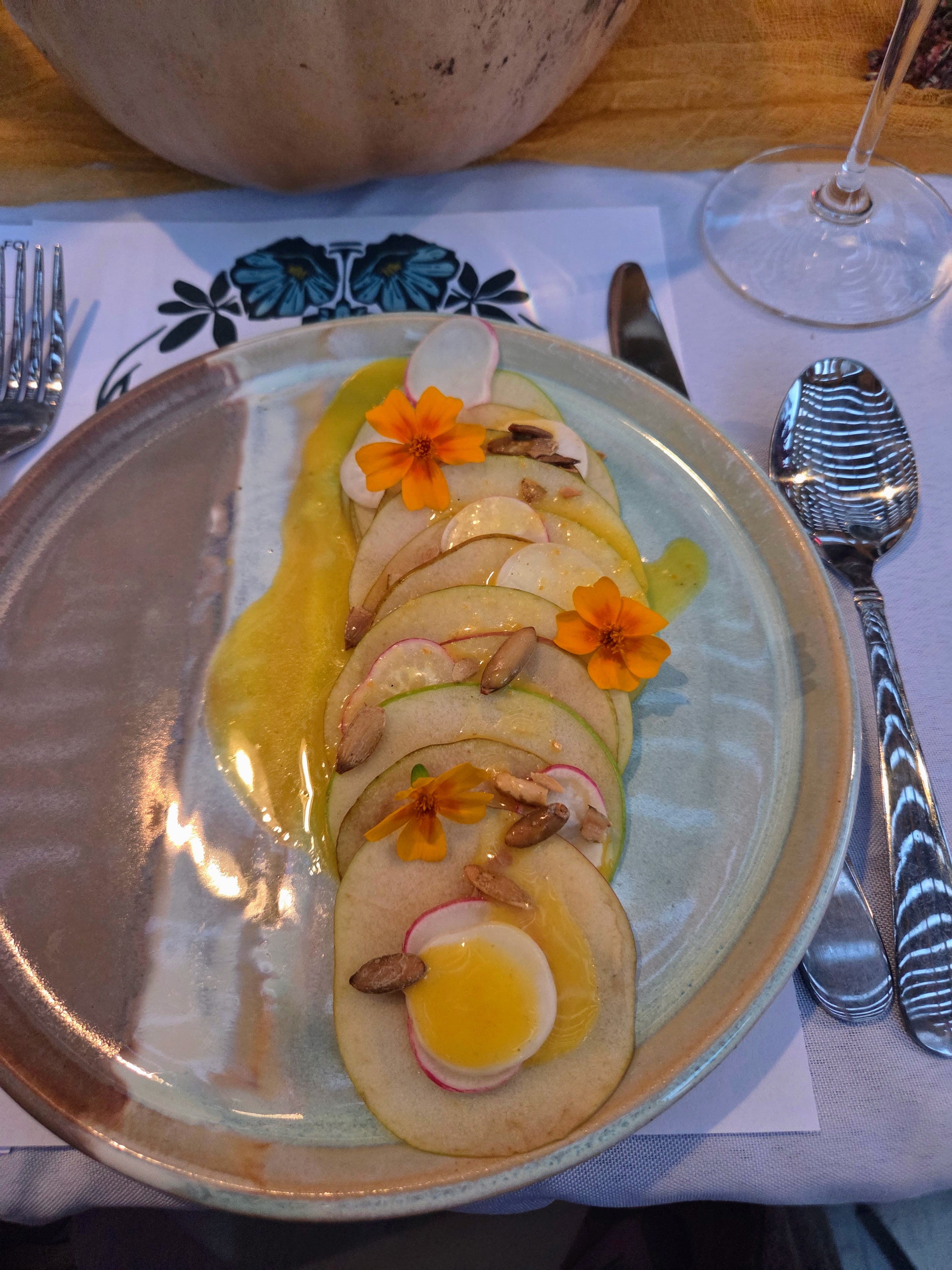 Course 1 - Raw Fall Ratatouille with Apple, Pear, Radish & Turnips, Orange Cardamom Dressing