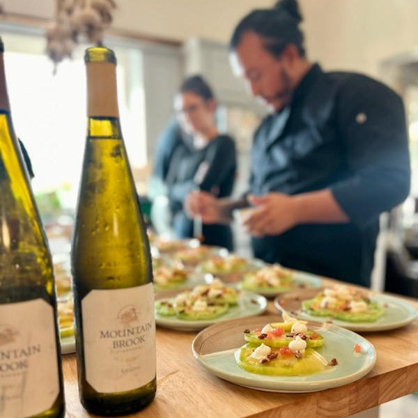 Expect robust wines, lush farm florals and stunning food courses with views overlooking the south mountain range and the farm. Each season's experience will highlight the bounty of the season as we bring in the harvest and our chef team prepares your dinner in-house. Each course is prepared just steps away from where it was grown, and expertly paired with award winning wines from our neighbors at Mountain Brook Vineyard, for an outstanding culinary experience. Join us at this intimate farm to table experience celebrating our community and local food!